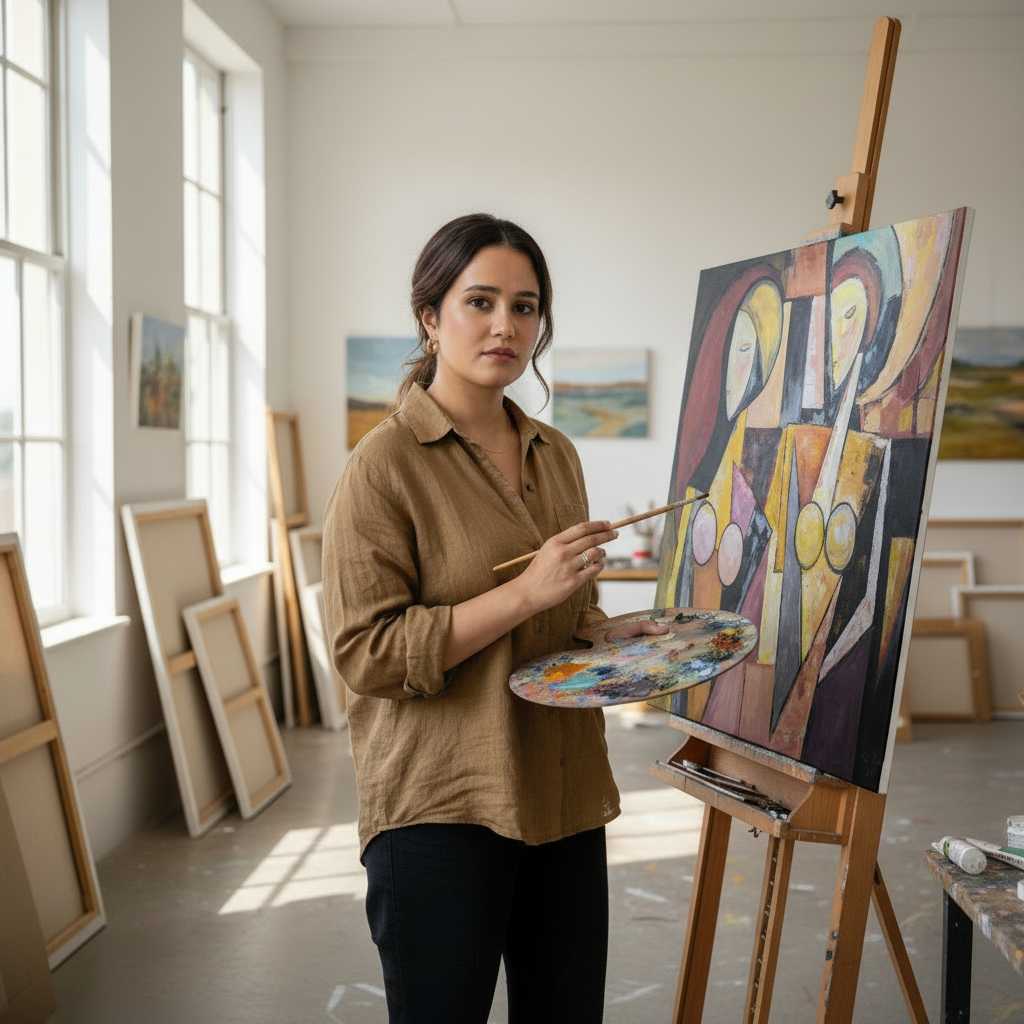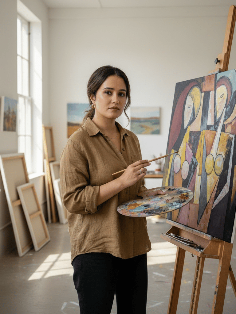 Issue d’un double parcours ingénieure en informatique et artiste, elle développe un art hybride mêlant techniques traditionnelles (huile, acrylique, dessin, modelage, gravure, sérigraphie) et dispositifs immersifs : réalité virtuelle (VR), réalité augmentée (AR) et intelligence artificielle (IA). Ses personnages, portraits, corps et marionnettes, prolongent leur présence dans le numérique, à la frontière du tableau, de la sculpture et de l’avatar.